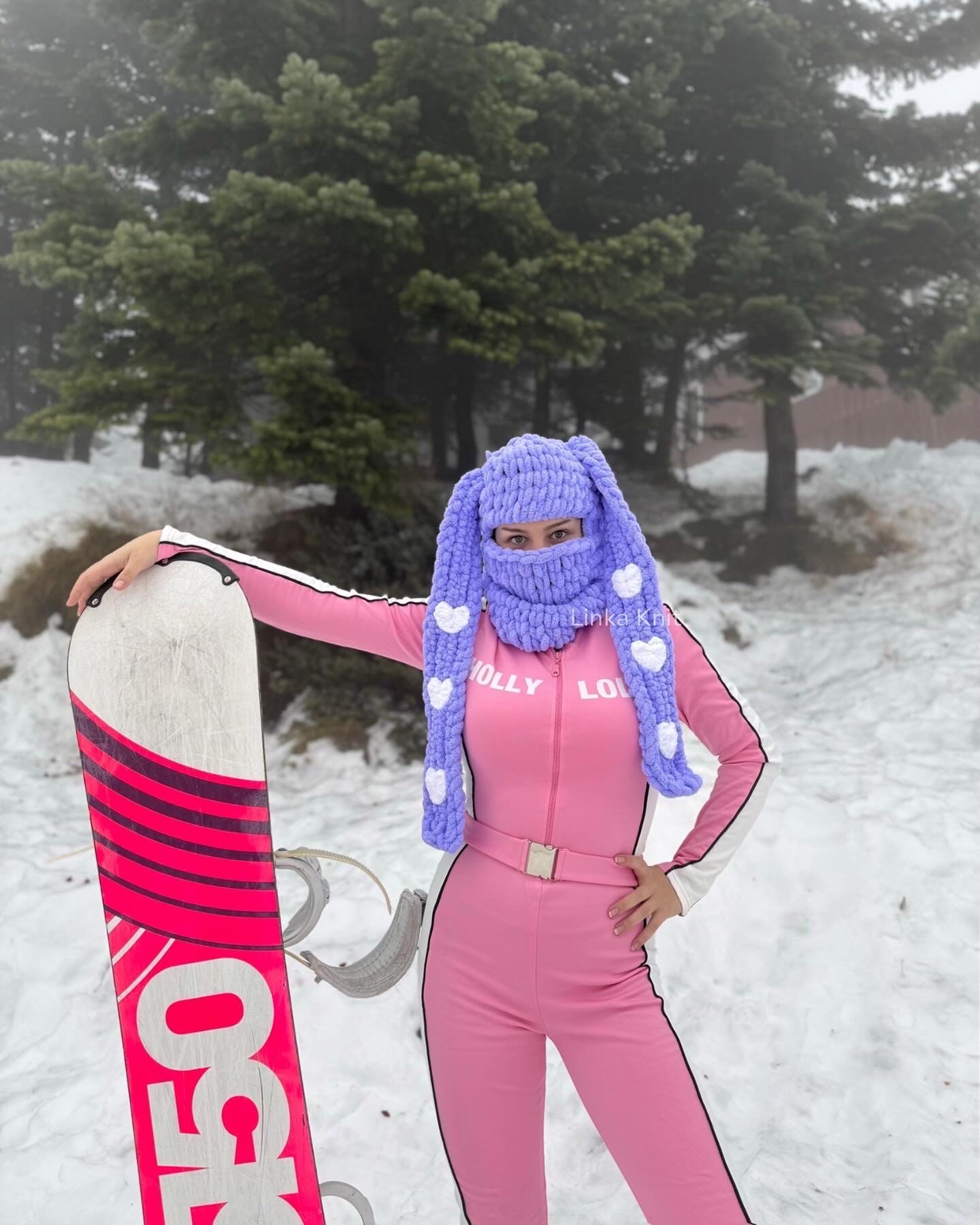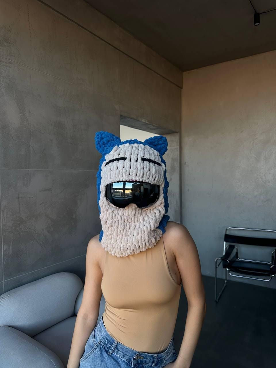 Une cagoule au crochet en peluche faite main conçue comme un masque de ski amusant pour vous ...