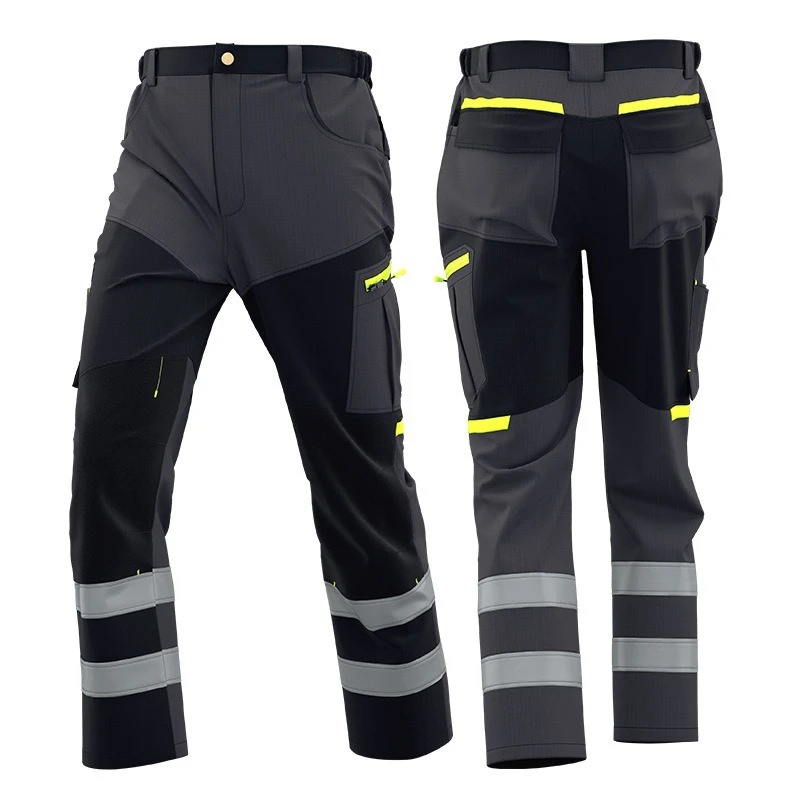 Pantalon de travail pour hommes à rayures haute visibilité Pantalon cargo multi-poches...