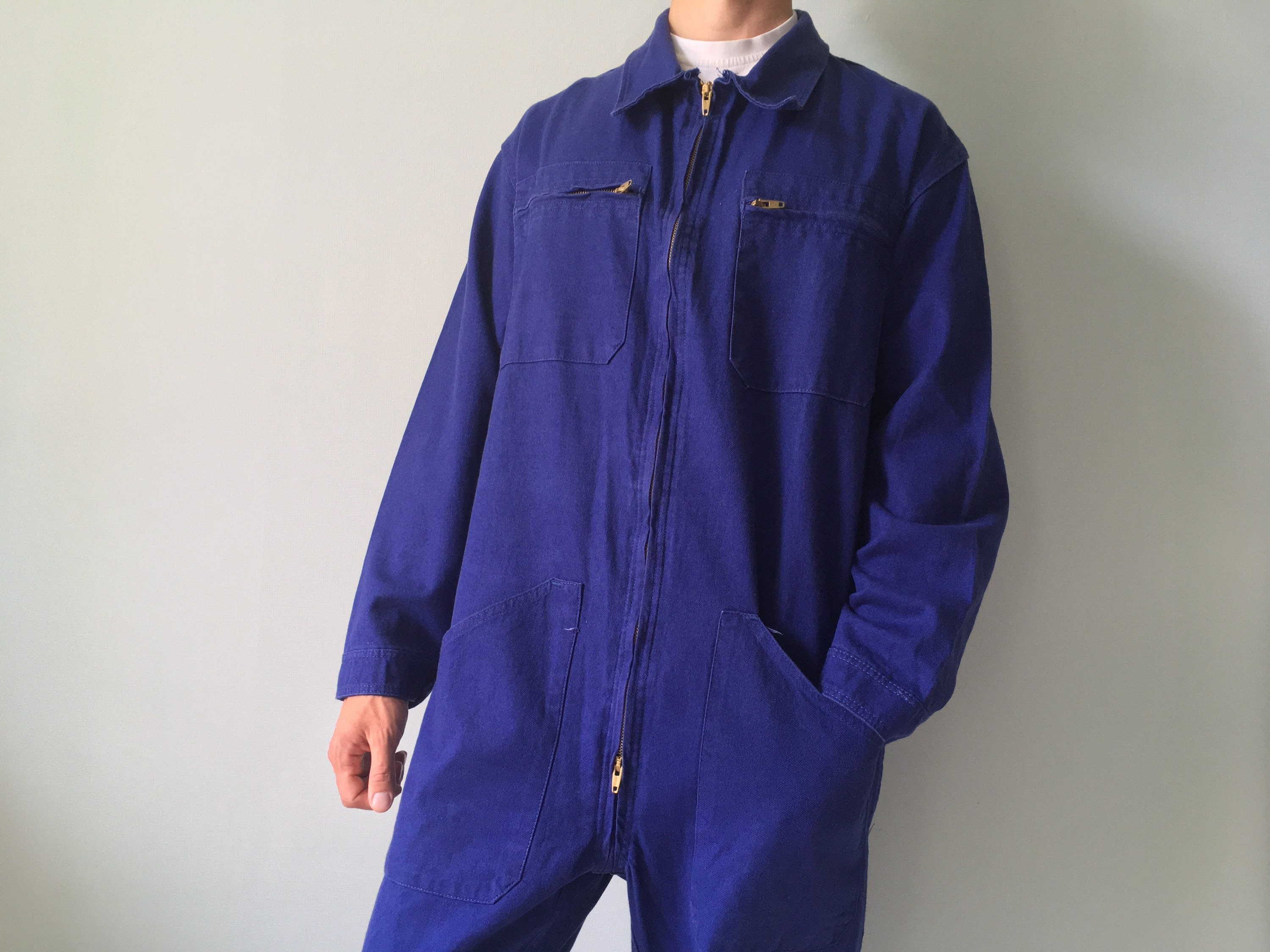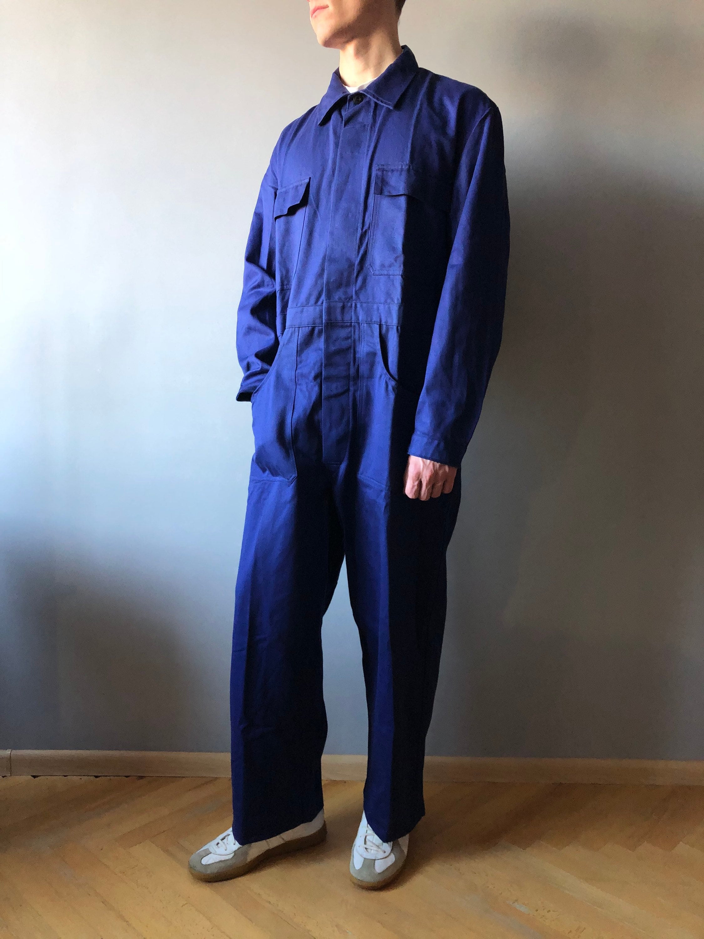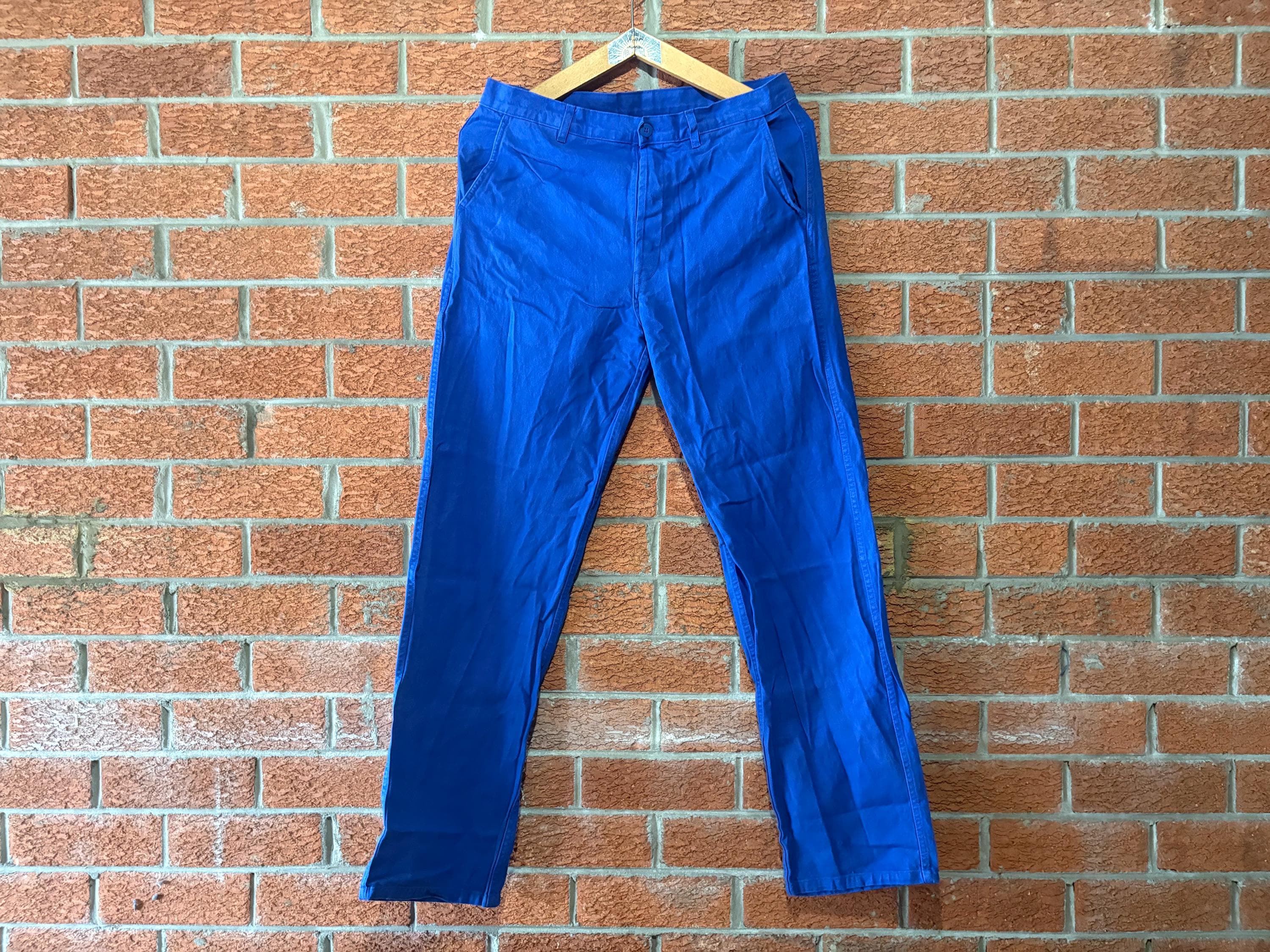 "( Pantalon de travail bleu français / en coton de poids moyen de couleur bleu vif / deu...