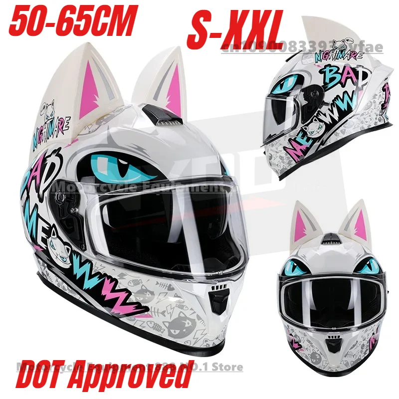 Casque de moto oreilles de chat rose Casque intégral de moto...
