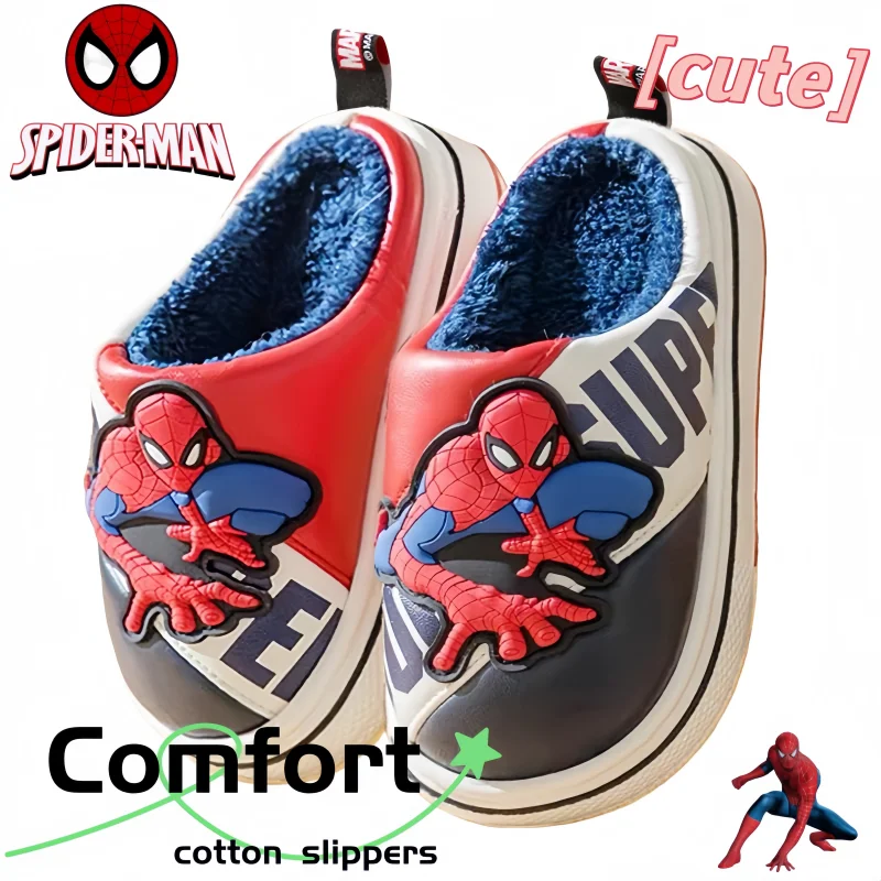 Pantoufles en coton Marvel Spiderman, style dessin animé imperméable en cuir PU, panto...