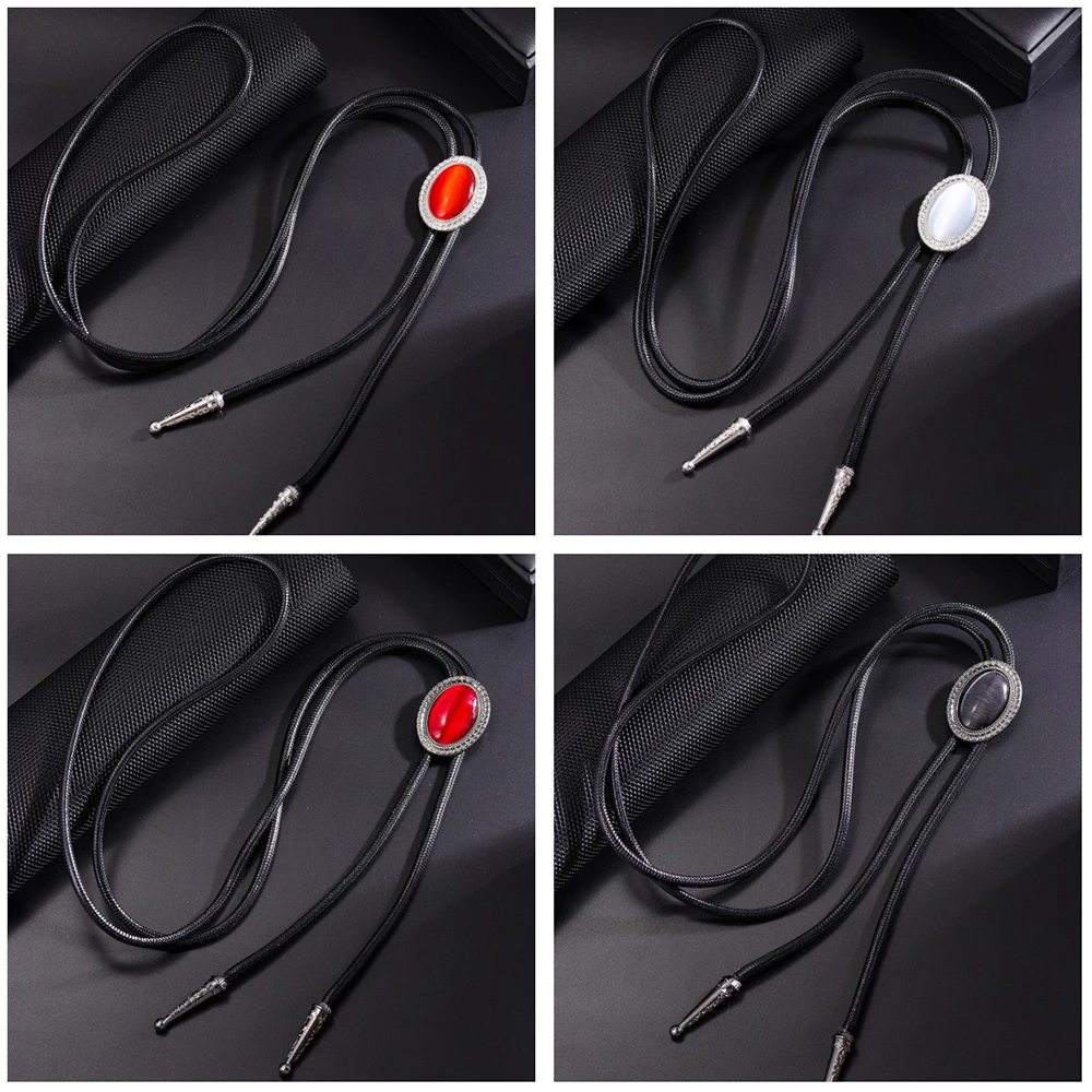 Cravate Bolo pendentif à motif de pierres précieuses elliptiques à la mode comm...