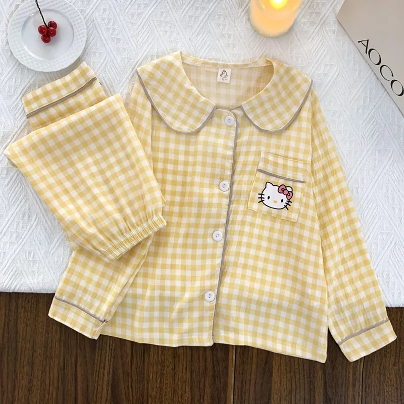 Anime 2 pièces Kittys dessin animé enfants pyjamas hauts pantalons Kawaii filles Pjs p...