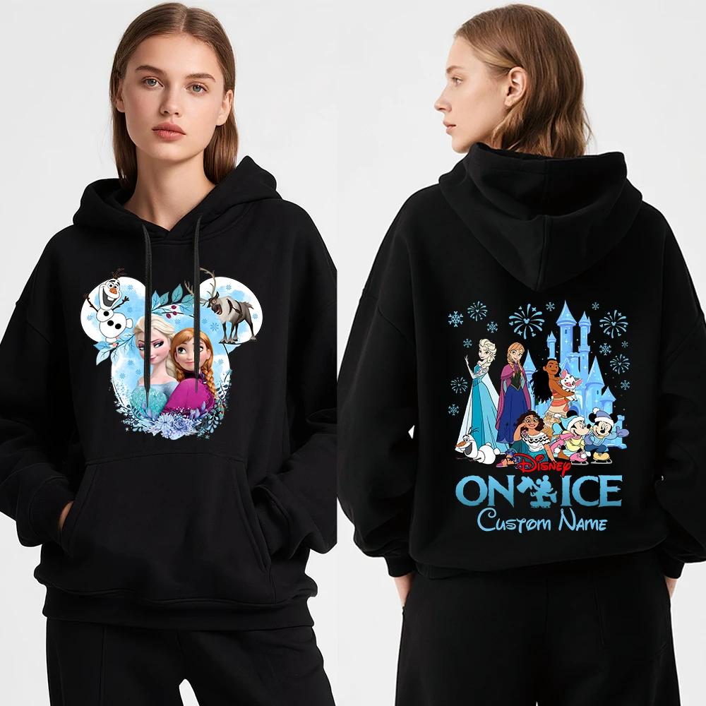 Sweat à capuche imprimé personnages Disney sur glace pour femme, doublure polaire, con...