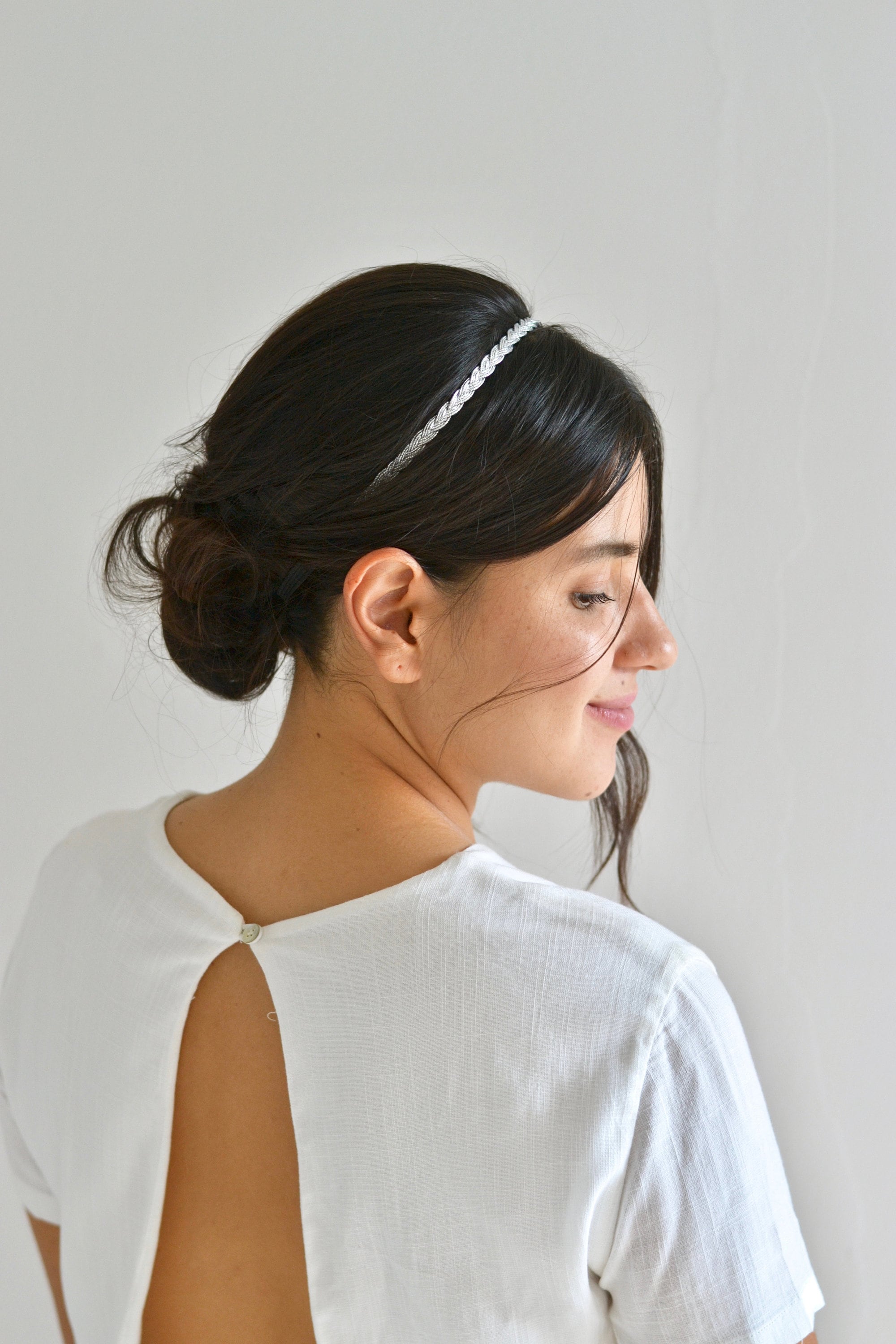Wedding headband, headband, bridal braided tiara headband embroider...