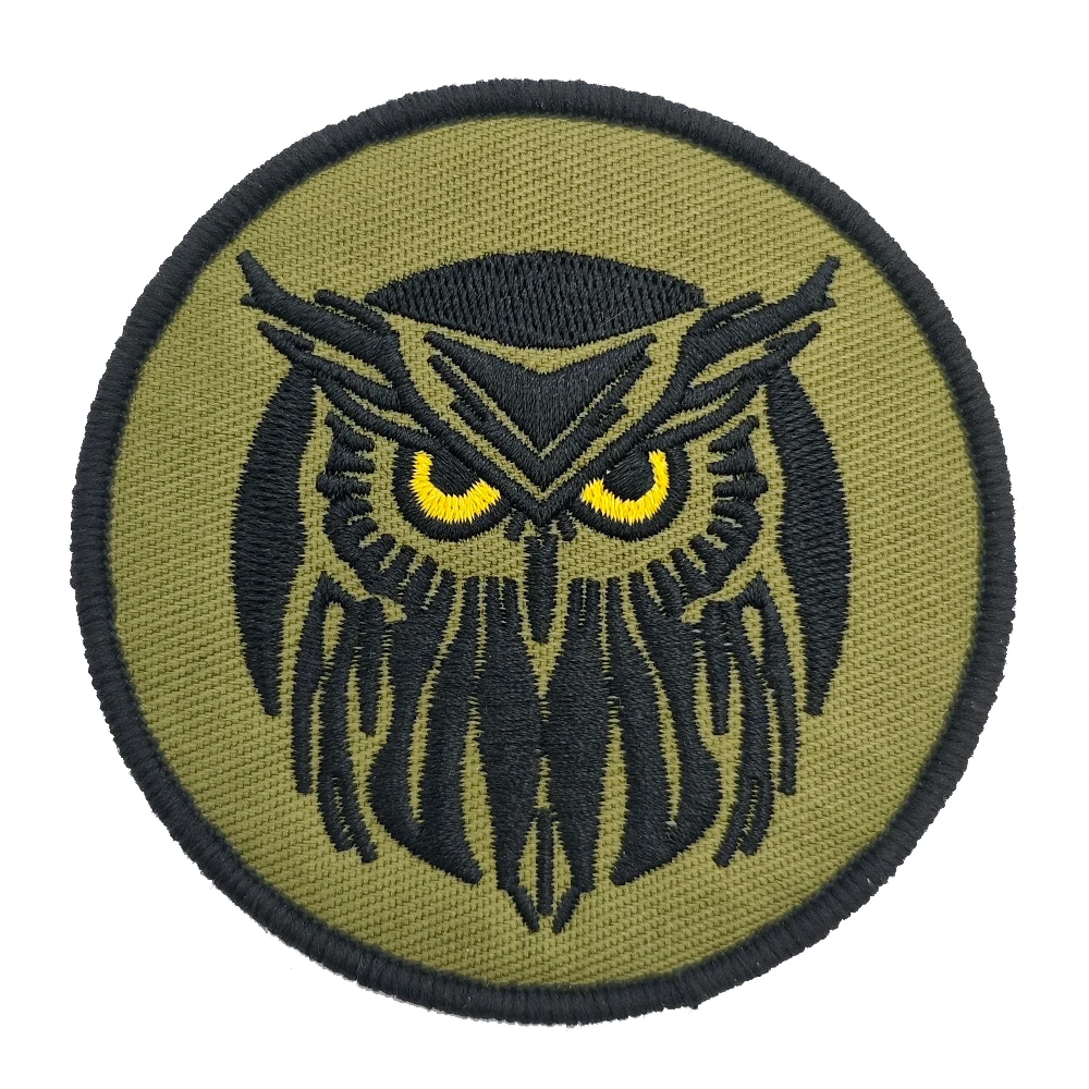 Écusson brodé tactique de hibou aux yeux jaunes, insigne moral DIY velcro, badge vert ...
