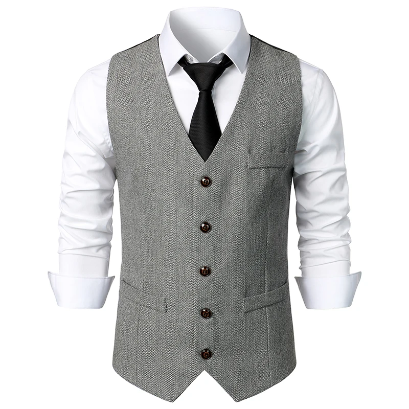 Gilet homme coupe ajustée sans manches laine Tweed Gilet hommes Double boutonnage chevrons Tw...
