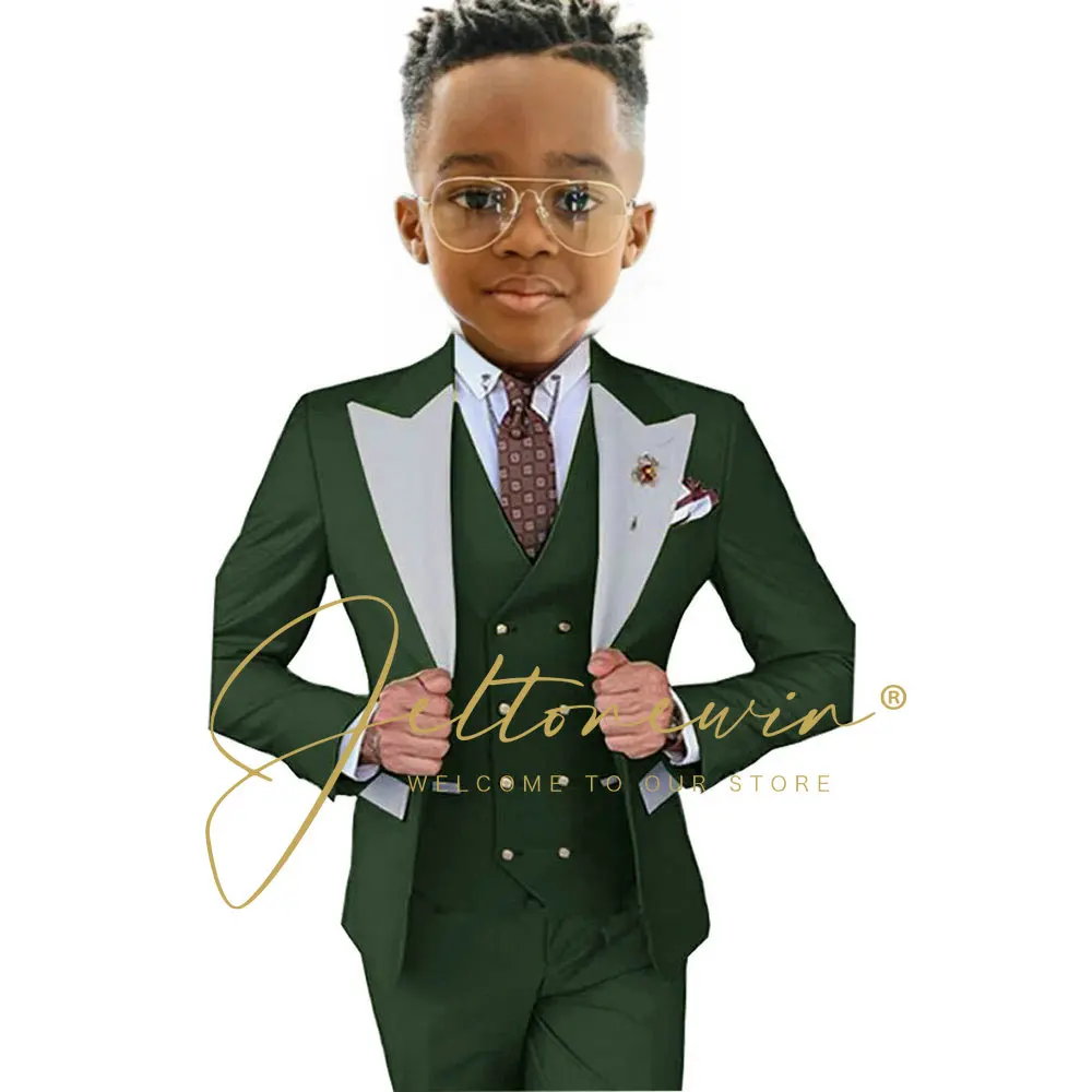 Costume pour garçon, veste, gilet, pantalon, 3 pièces, vert foncé, costume d'an...