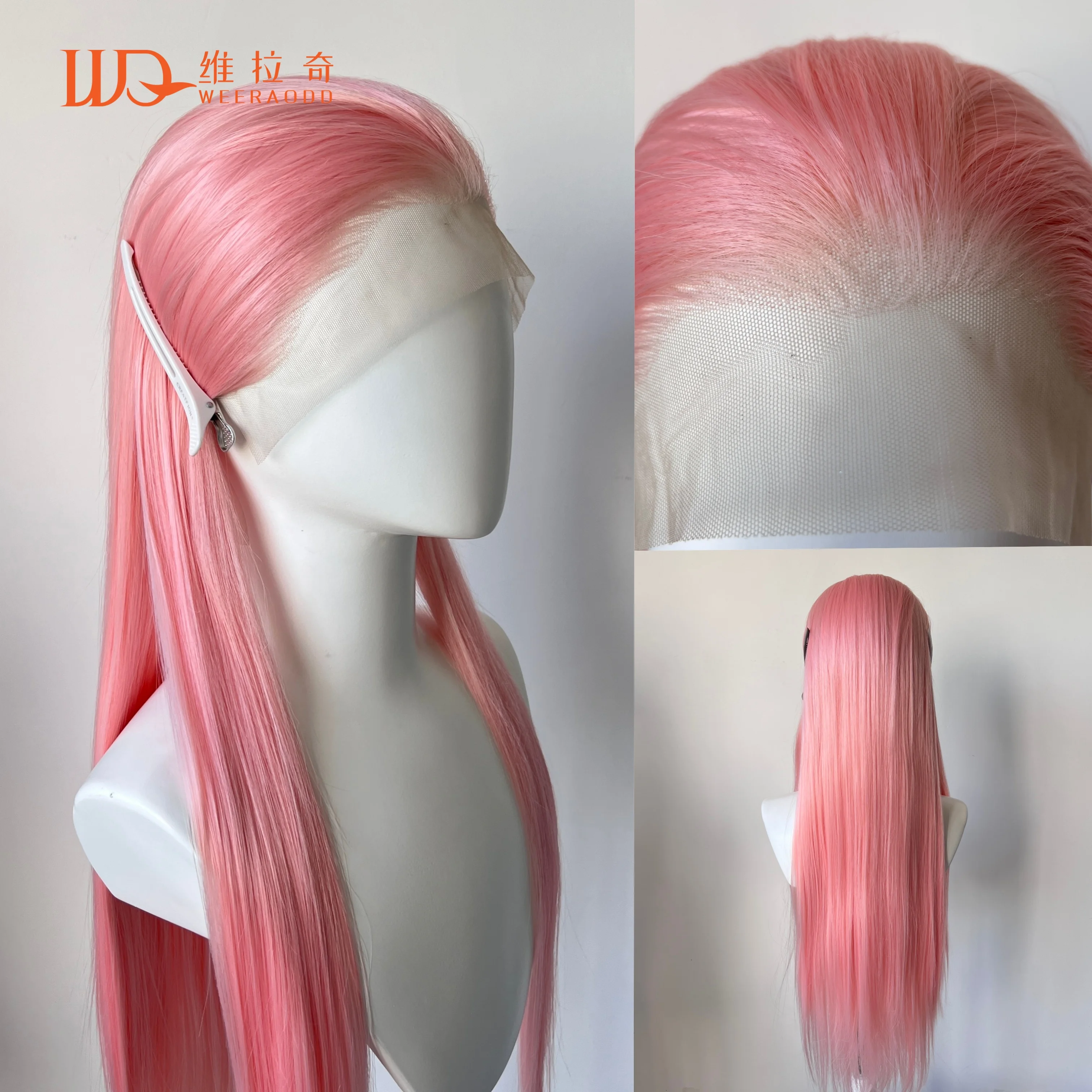 Perruque Lace Wig synthétique lisse rose Pastel, perruque longue en soie lisse, perruque Lace...