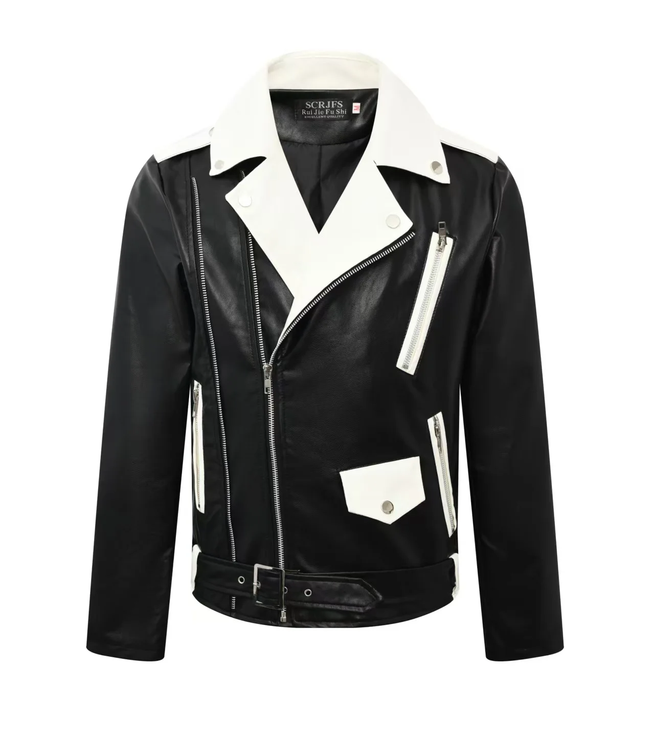 Hommes col montant moto vestes en cuir coupe ajustée manteau...