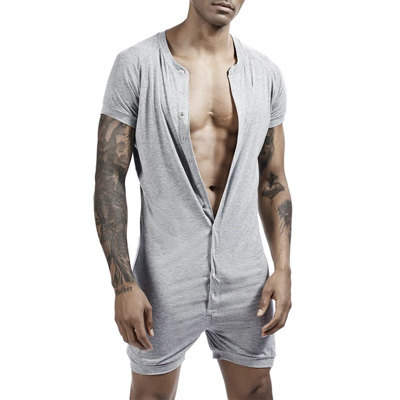 Combinaisons à col rond boutonnées pour hommes, pyjam...