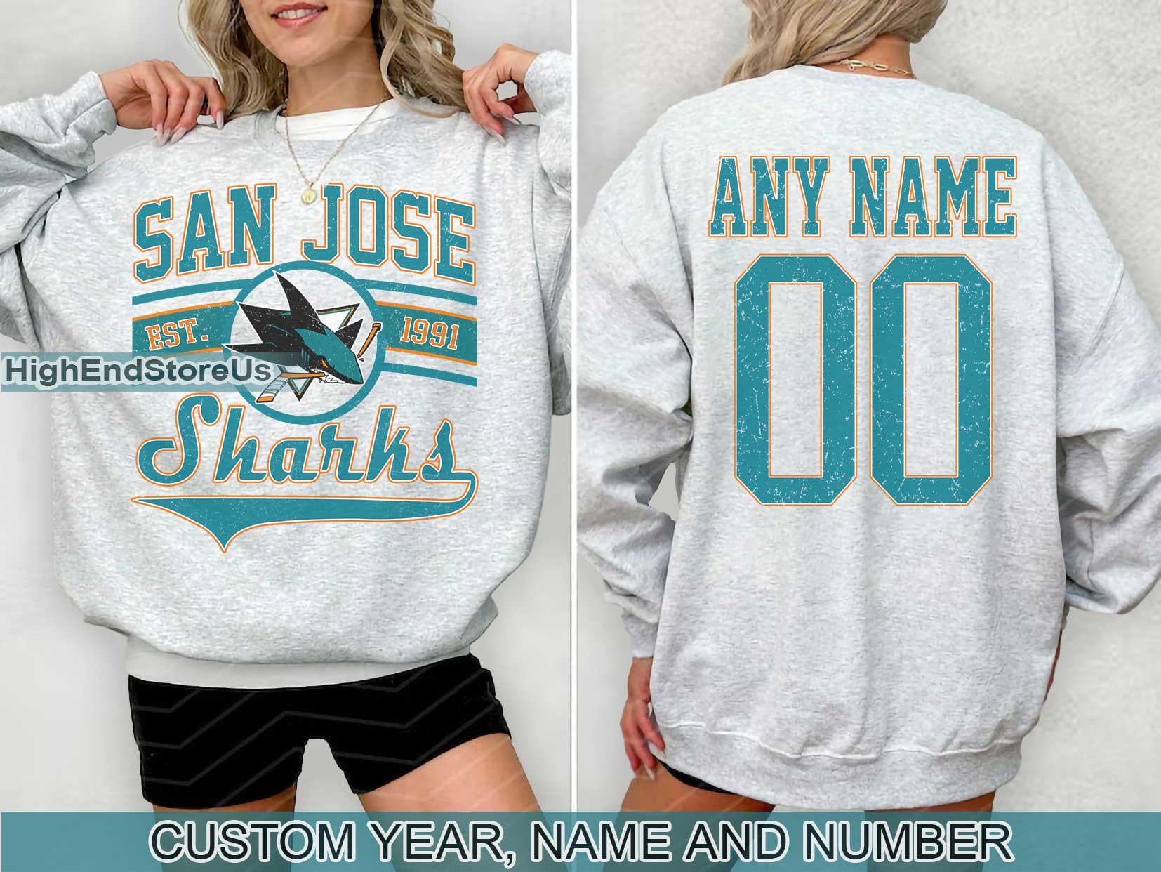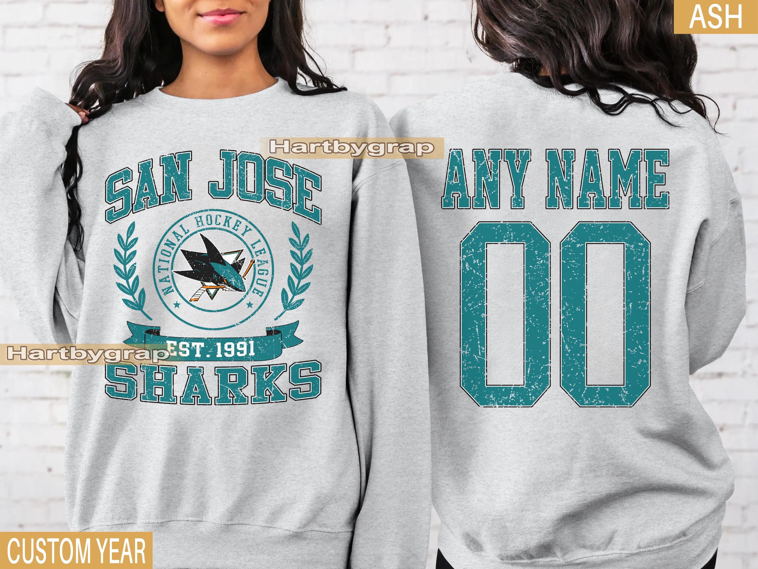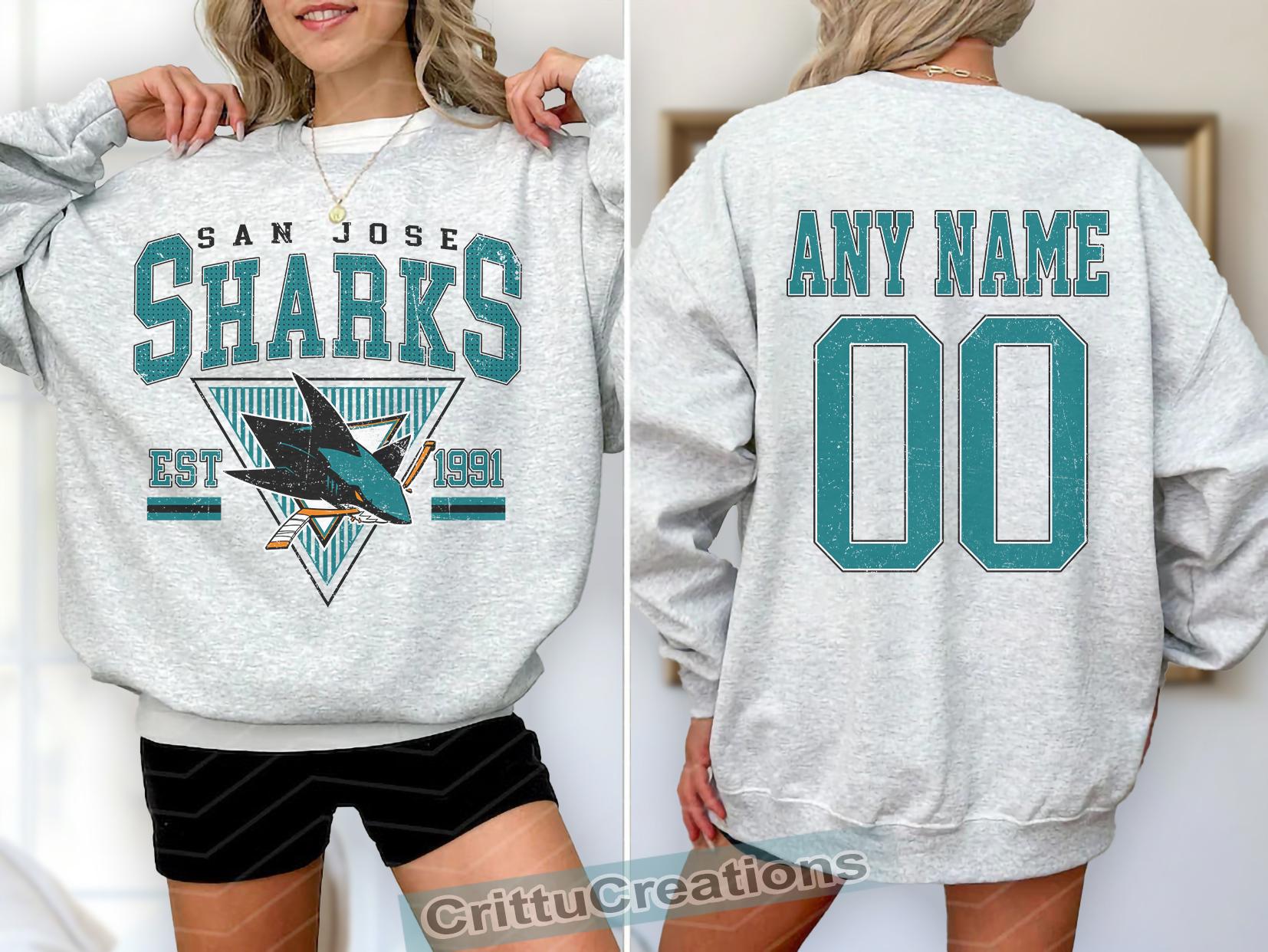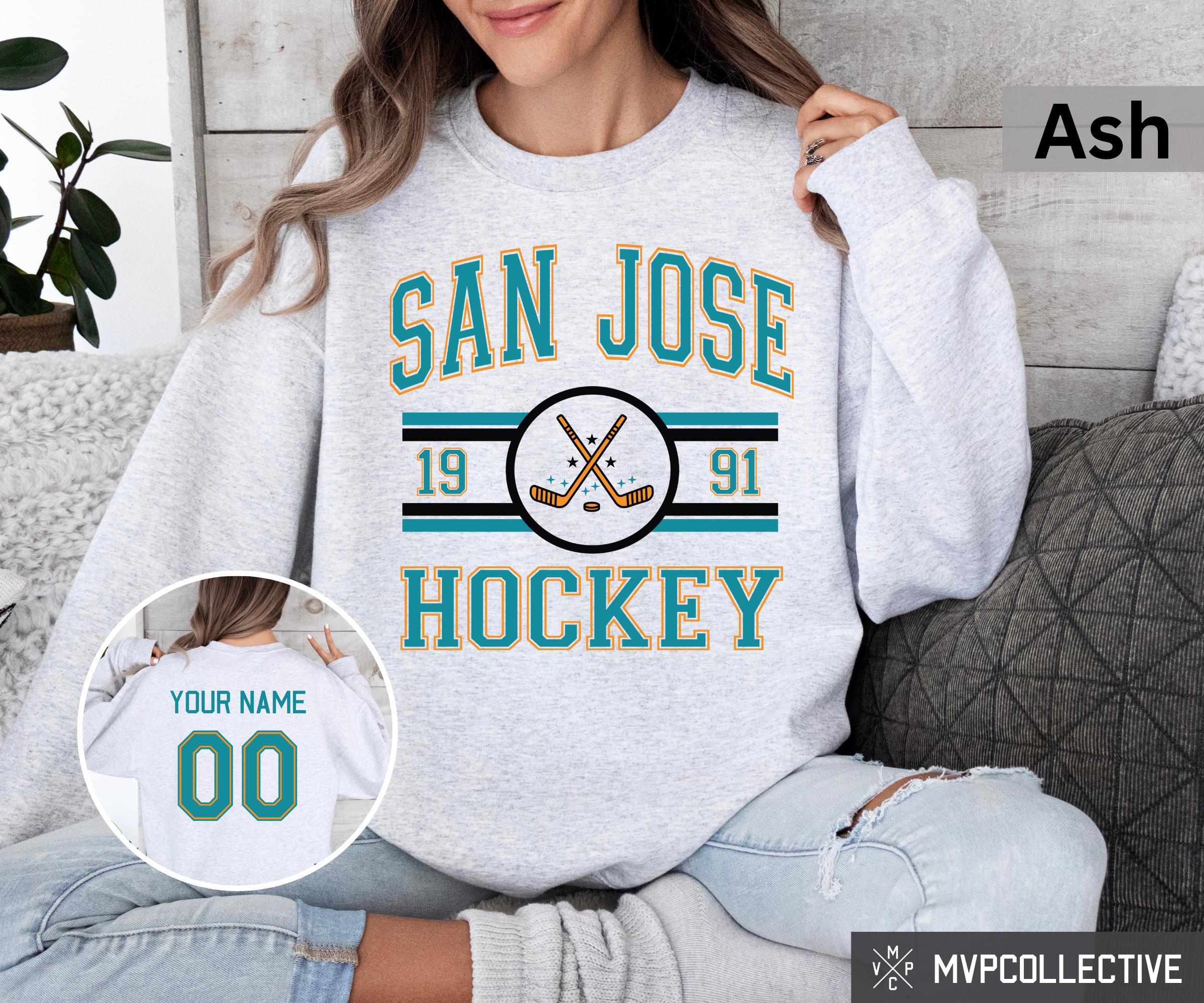 sweat-shirt vintage San Jose Sharks, chemise rétro San Jose, chemise de fan de hockey de San ...