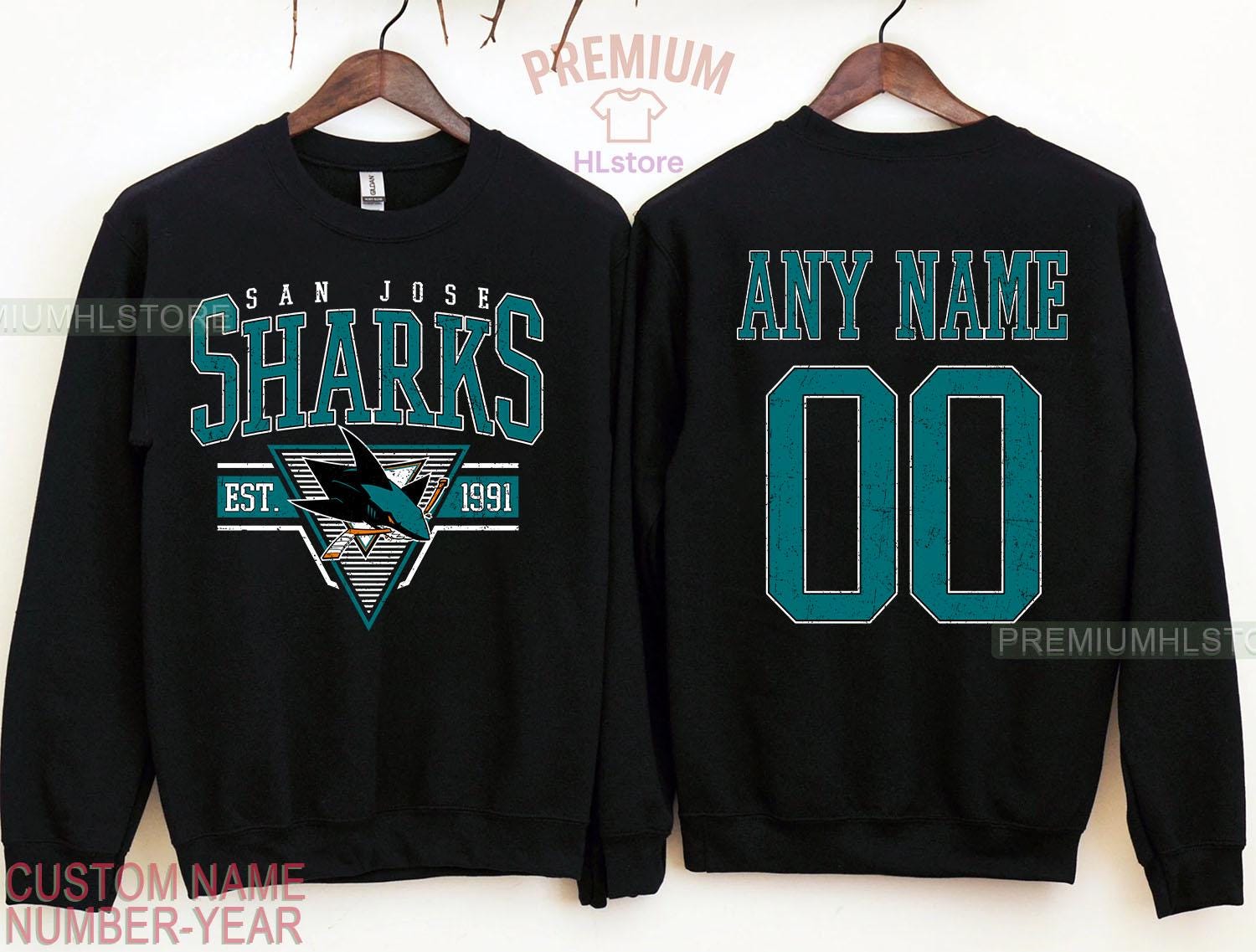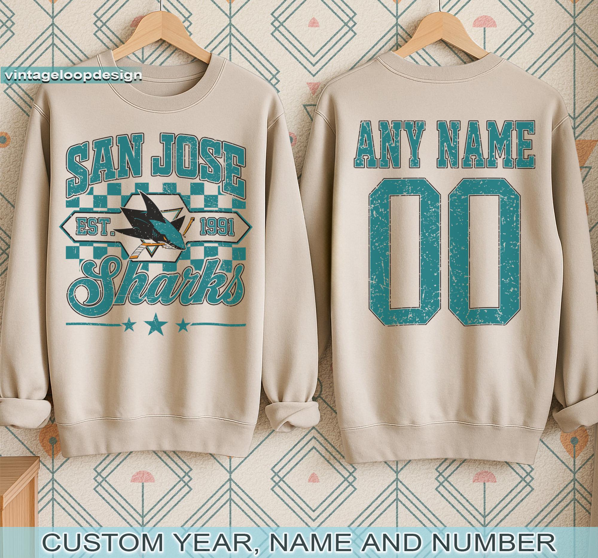 Sweat-shirt de hockey personnalisé de San Jose, col rond des Sharks de San Jose, chemise de h...