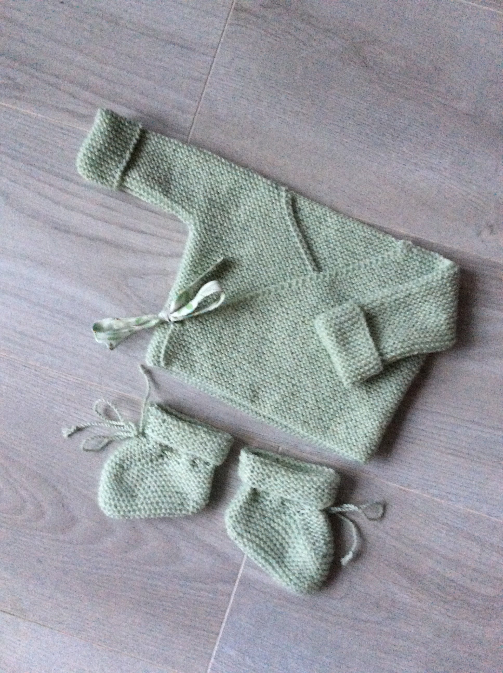 Ensemble bébé, tenue naissance, pure laine (100% mérinos), tricoté &agra...