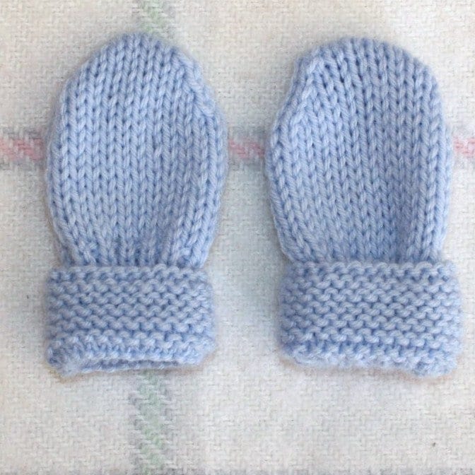 Moufles de Naissance Bébé en Tricot Fait Main Bleu / ...