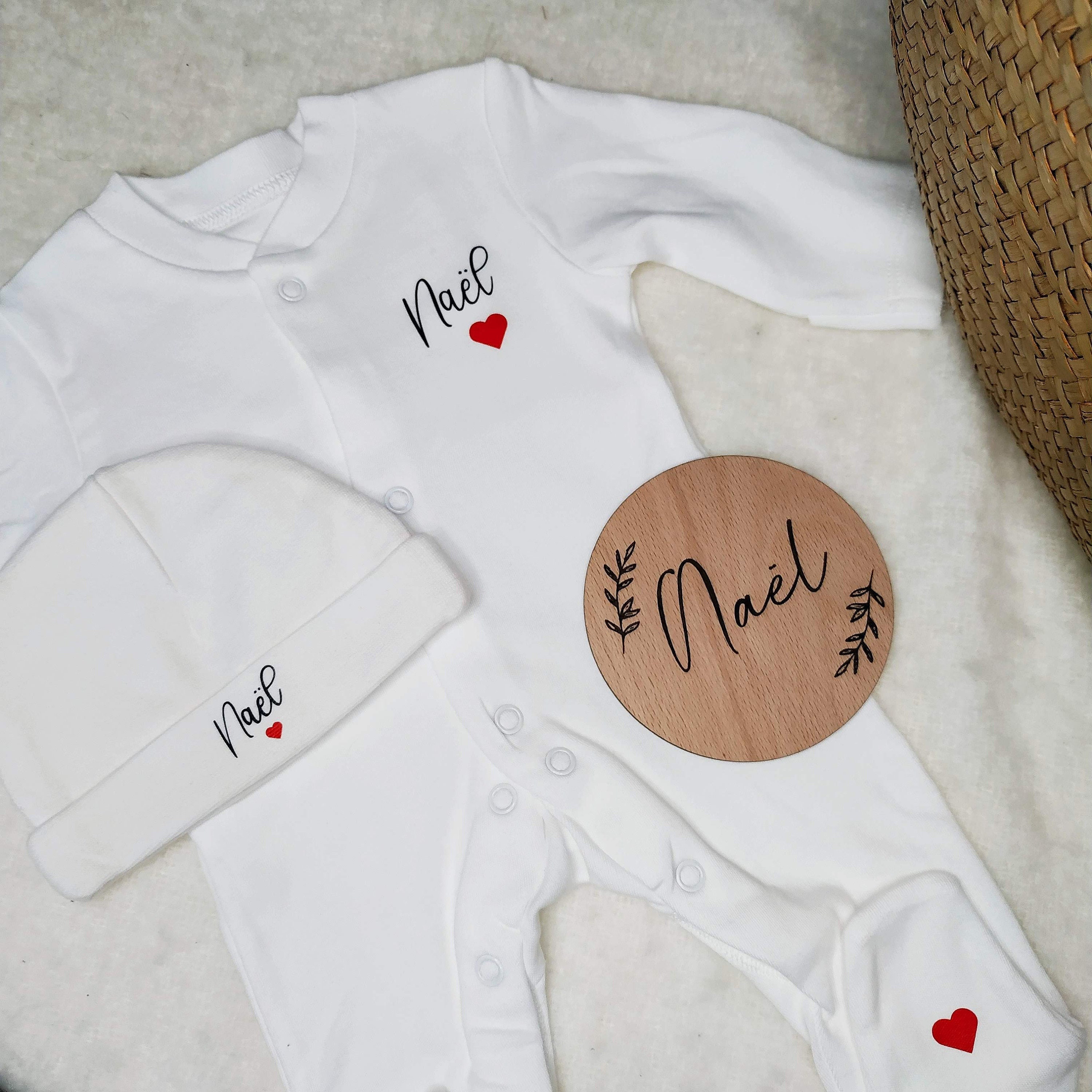 "Ensemble Pyjama de Naissance Personnalisé avec Vêtements et Rond en Bois (Carte &...