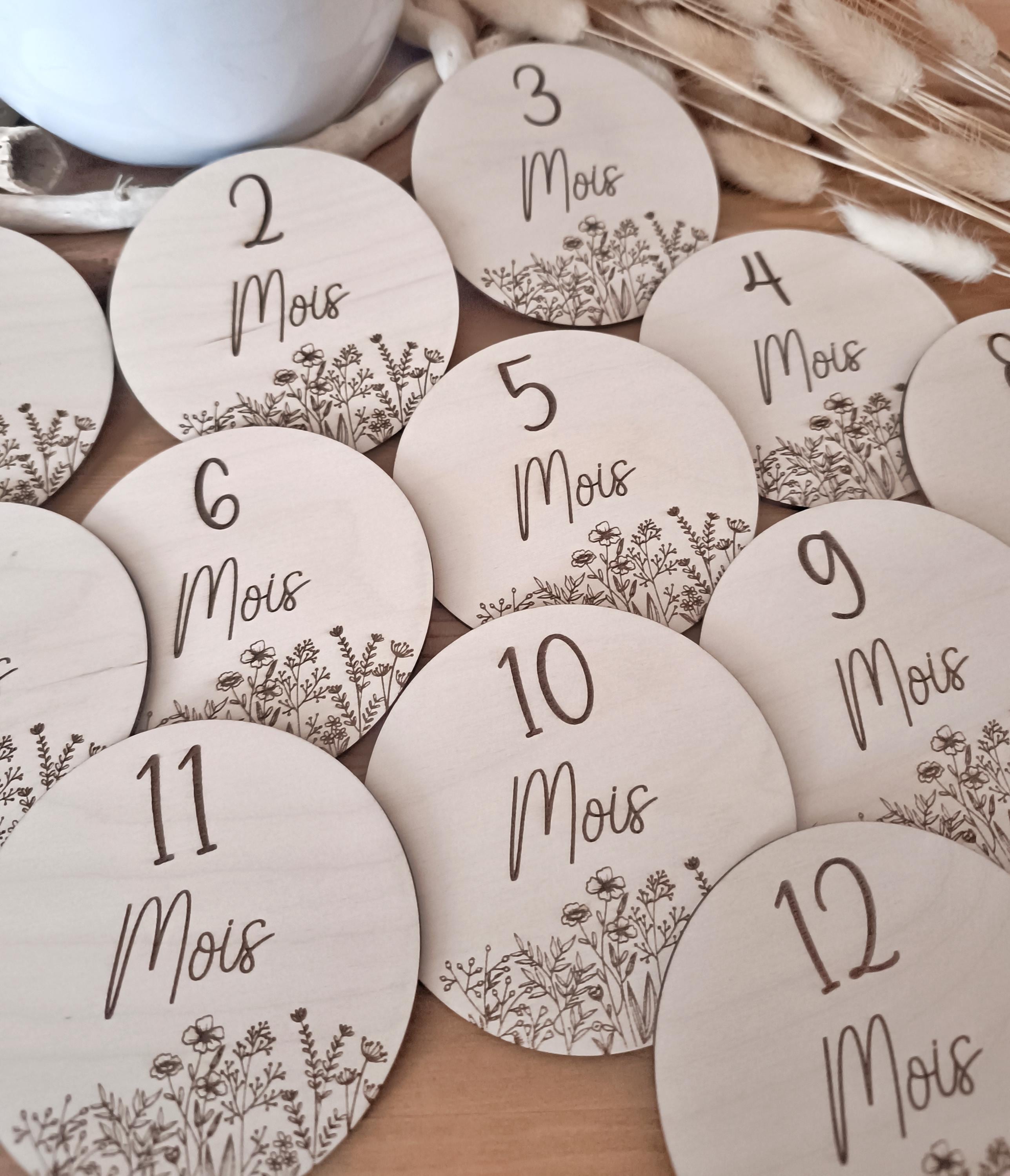 Craquez pour notre collection exclusive de cartes étapes bébé en bois grav&eacu...