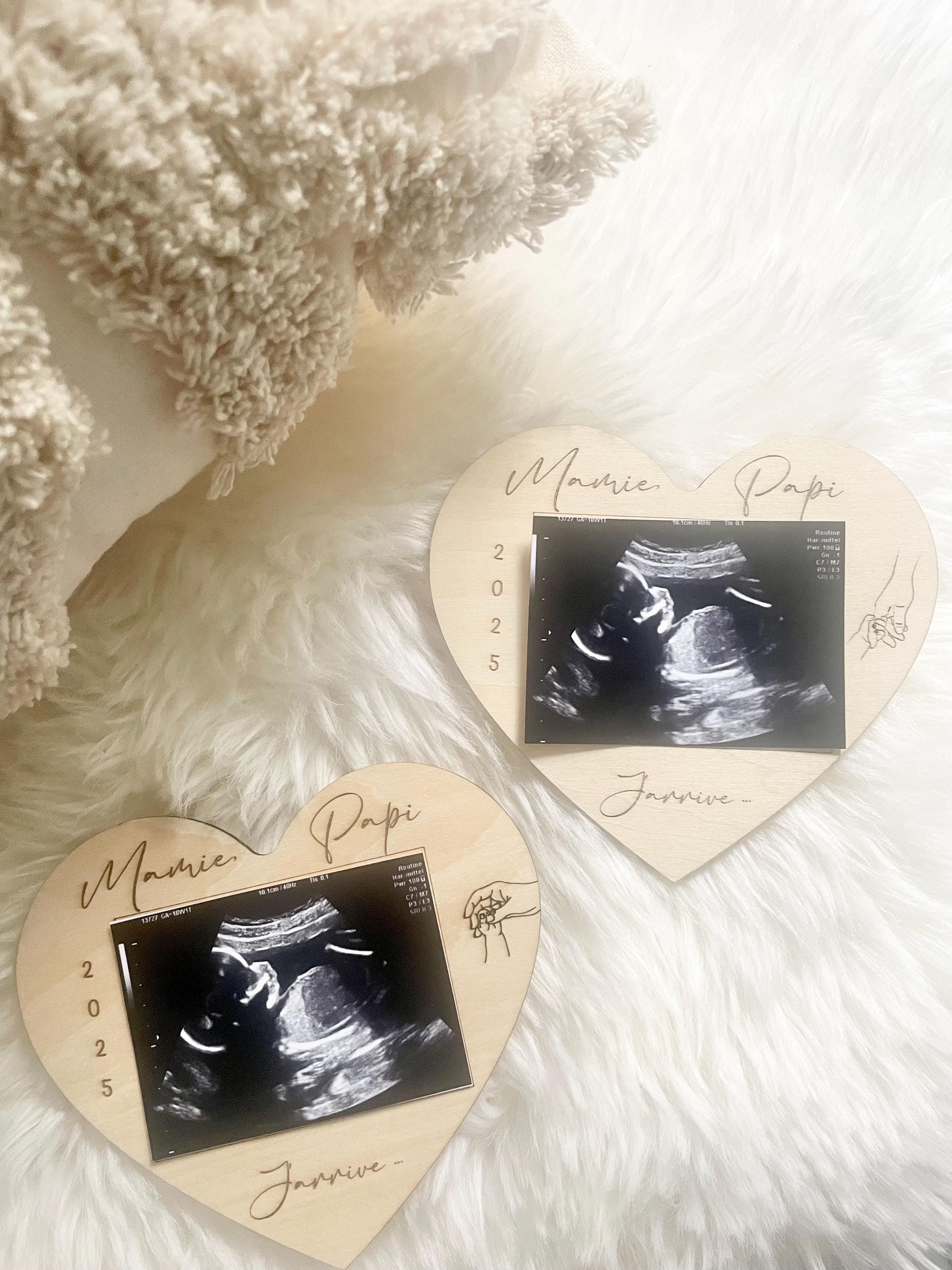 Magnet Cœur en bois aimanté annonce grossesse, bienven...