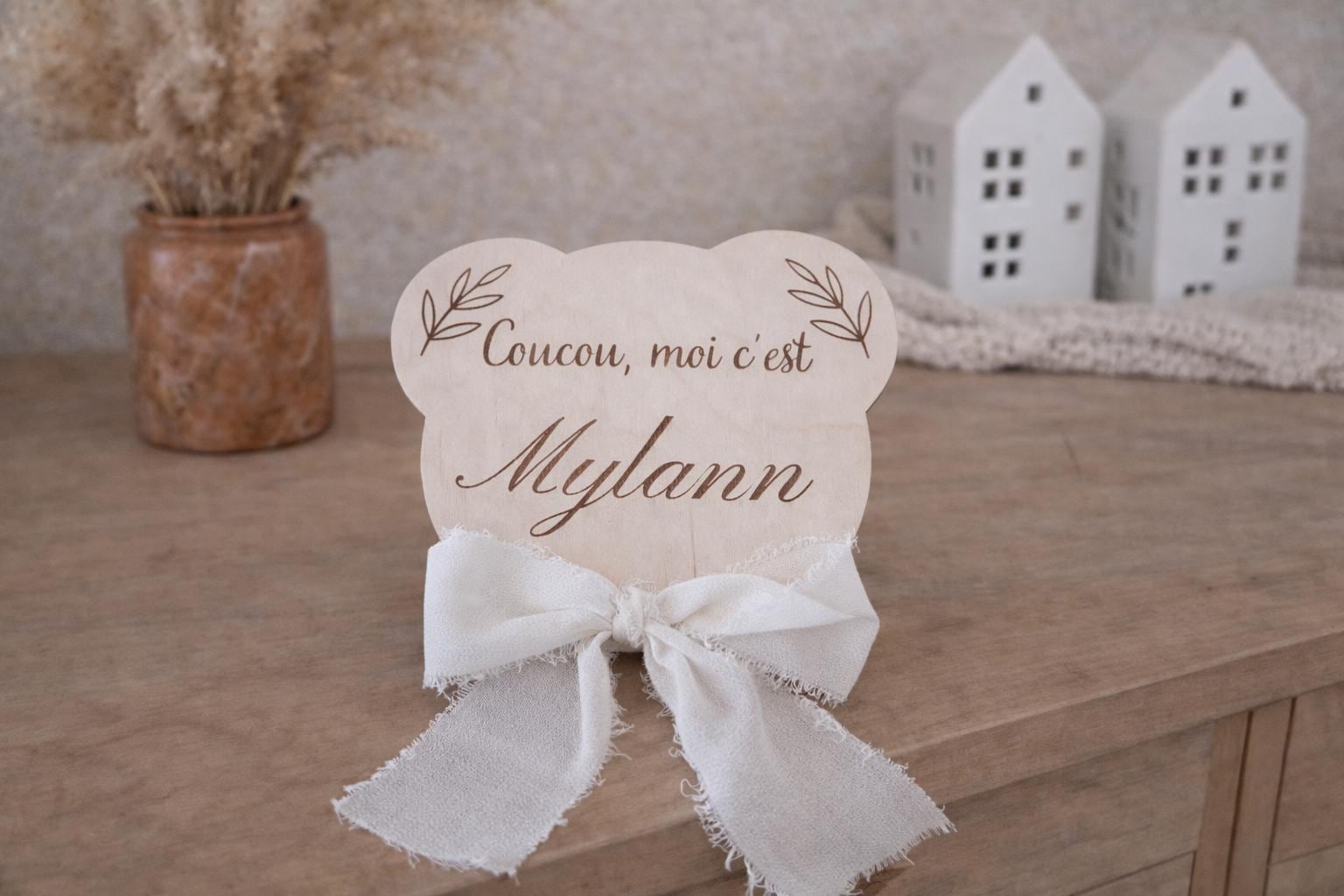 • Carte annonce personnalisée, Plaque en bois ballon, Accessoi...