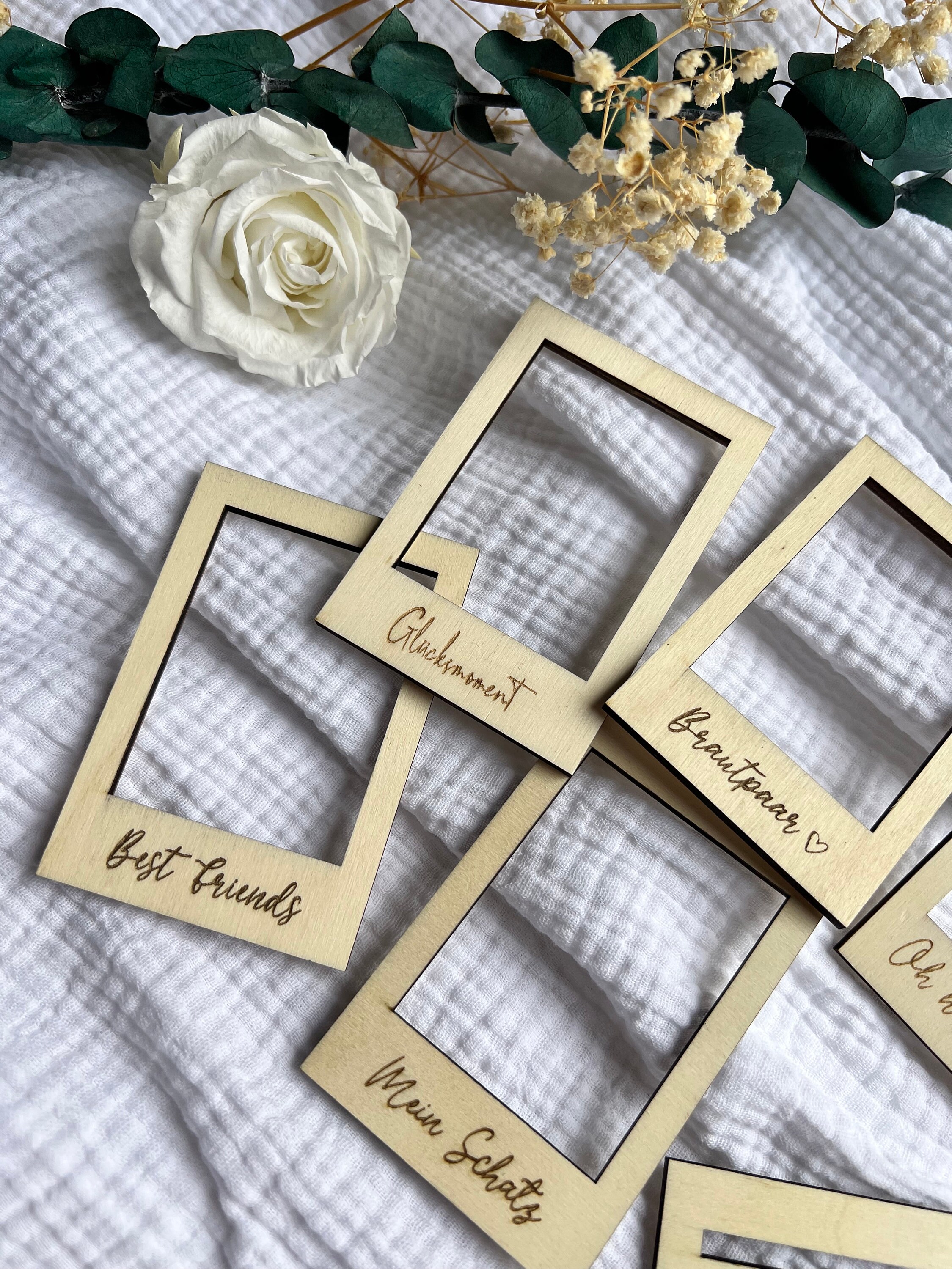 Cadre photo en bois Polaroid avec personnalisation individuelle. vous pouvez choisir parmi 5 polices...