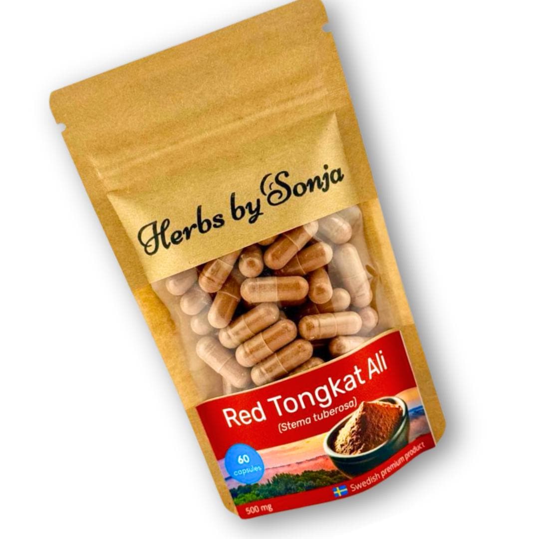 Gélules Tongkat Ali rouges 500 mg - extrait de plantes 200:1 dans des gélules vé...